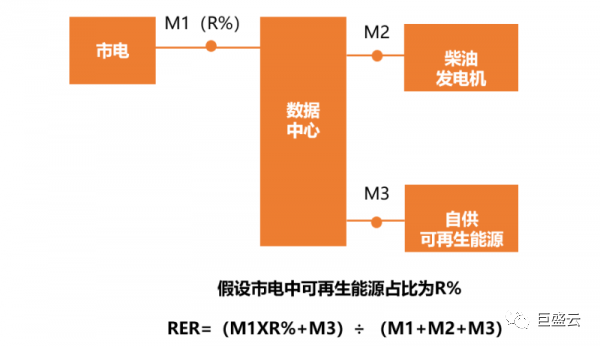 RER是可再生能源利用率,用于衡量數據中心利用可再生能源的情況,以促進可再生、無碳排放或極少排放的能源利用。RER的計算公式為: